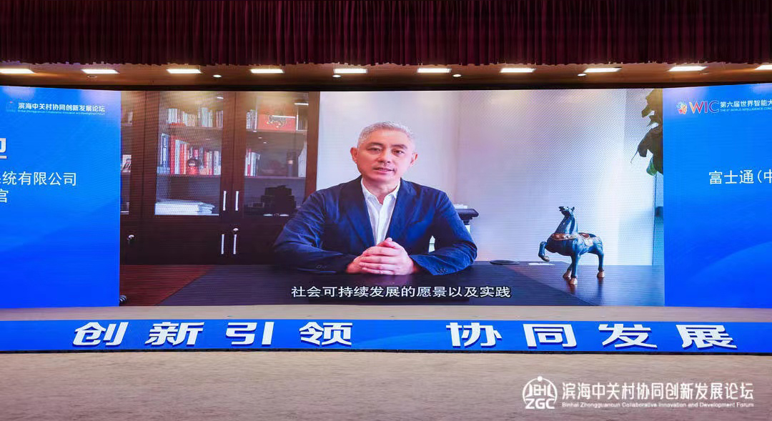 天津, 2022-6-28——以“智能新时代:数字赋能,智赢未来”为主题的第六届世界智能大会近日在天津拉开帷幕。富士通(中国)信息系统有限公司(以下简称“富士通”)首席执行官薛卫先生受邀参加了本次世界智能大会主题论坛——滨海中关村协同创新发展论坛,并以视频方式发表了题为《与您携手,共建可持续未来》的主题演讲,分享了富士通对于数字化转型以及行业、社会可持续发展的愿景及实践。