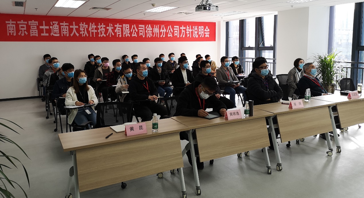 随后,王支社长与大家分享了徐州支社2020年的重点目标及施策。2020年,我们的目标是力争全面参与本社三大业务领域,构筑支社业务基石,同时实现自主业务零突破。为实现这个目标,支社将会着重在开发能力培训、核心人员培养、强化日语交流能力等方面做出更大的努力,力争全面提升支社的整体业务推进能力,成为FNST重要的研发据点。