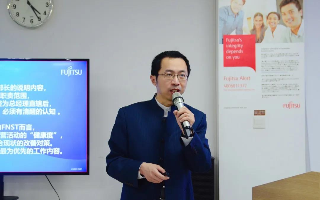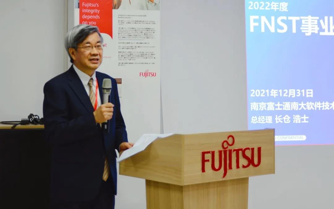 随后,FNST长仓浩士总经理向大家阐述了2022年度公司事业方针。回顾2021年,国内外新冠疫情此起彼伏,前景未明,在此复杂多变的业务环境中,FNST依然勇往直前,克服困难,顺利实现了年初目标。对此,长仓总经理表示了对每位员工的感谢之情。并希望在新的一年中,大家能够继续强化与客户的信任和共情,持续维护和开拓业务,拥抱变化,再攀高峰。