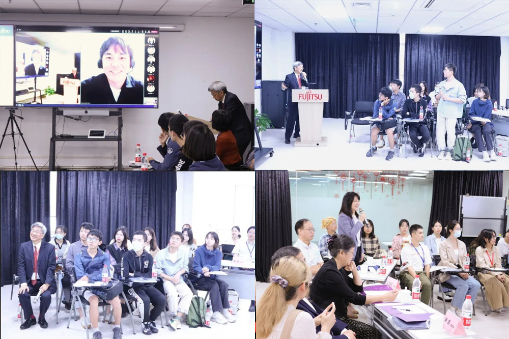 为了让南大外院师生能够更好地理解日本职场文化、感受真实场景下的日企工作氛围,本次还特别策划了外院师生和日本富士通总公司以及FNST日本分公司的部分员工通过Teams系统,进行了实时线上交流,再现了与日方线上会议的场景。会上学生们就自己关心的日企工作方式、岗位要求及日语能力的运用方法等问题进行提问,视频会议另一端的参会日方人员也亲切回答了学生们的问题,并讲述了自己的理解和体会。本次交流会加深了南大学生们对日本职场的理解,也让与中国大学生进行交流的日方人员觉得非常有意义,交流会在一片欢声笑语中落下帷幕。