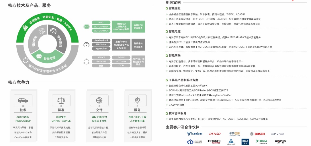 我司拥有智能汽车In-Car和Out-Car全栈技术能力,在SDV时代为汽车厂商(OEM+Tier1)提供全面的软件技术服务。