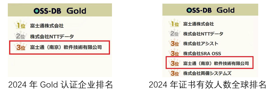 2023年荣获OSS-DB Gold认证企业排名第5名,并在证书有效人数全球排名上蝉联第3名。