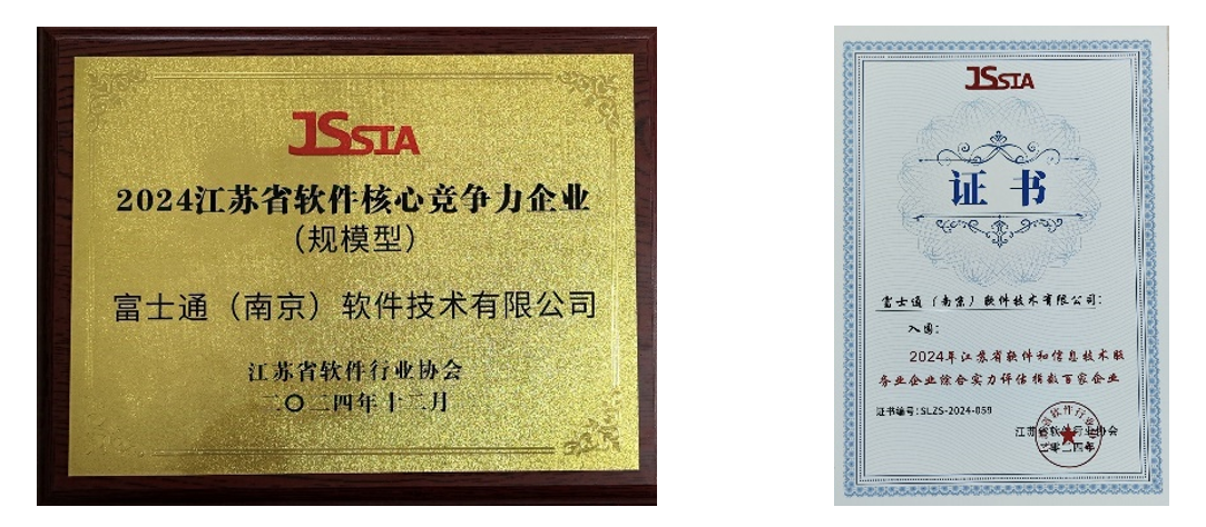 中国软件协会与江苏省软件行业协会共同主办的第六届江苏软件产业发展大会在南京举办,大会现场发布了2024年长三角百家品牌软件企业证书、2024年江苏省软件企业核心竞争力评价结果等内容。其中FNST荣获 “江苏省软件核心竞争力企业(规模型)”和 “江苏省软件和信息技术服务业企业综合实力评估指数百家企业”两项殊荣!