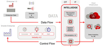 INTELLIEDGE steuert den Datenfluss von lokalen Anlagen in die Cloud, oft über Verbindungen mit geringer Bandbreite, um einen Überblick und die Verwaltung ganzer industrieller Prozesse – von der Bestandserfassung von Lieferketten über Bestellsysteme bis hin zu Produktionsabläufen zu ermöglichen. Damit lassen sich vollständig digitalisierte Produktionslinien mit automatisierter Optimierung der Lieferkette sowie der Betrieb sogenannter „digitaler Zwillinge" - also ein Überblick über alle Prozesse in Echtzeit, realisieren.