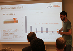 Bildquelle: Text&Event/Fujitsu - Florian Frimmel von Fujitsu stellt das Datacenter Portfolio von Fujitsu vor und zeigt die Weltrekorde der ETERNUS AF250 auf