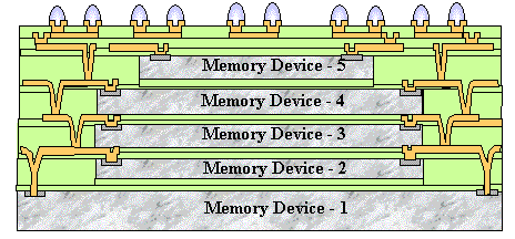 Figure 2 shows a schematic of 5-layer high capacity memory product with four chips stacked on top of the base-level memory device.