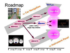 Utilizing this new chip from Fujitsu will make it possible to realize low-cost, compact in-car automotive systems with graphics, while maintaining high-performance system functionalities.