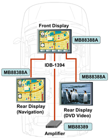 Anticipating the future demand for rear-seat entertainment systems, Fujitsu and Fujitsu VLSI Limited co-developed the MB88388A navigation-imaging and video transmission controller, and the MB88389 audio transmission controller to support the IDB-1394 standard.