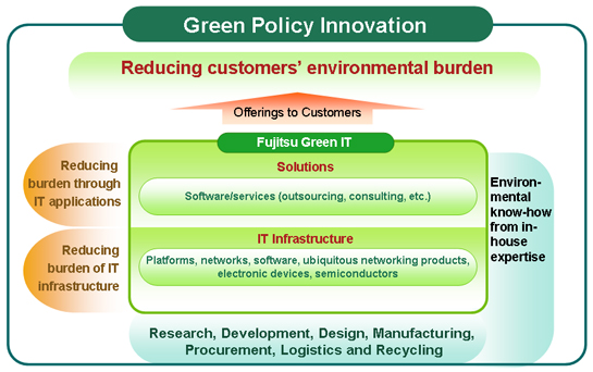 Fujitsu will concentrate its know-how and technological resources in two areas: reducing the environmental burden of IT infrastructure, and reducing customers' environmental burden through new IT applications. Going forward, the Company will successively introduce new products and services that will support these initiatives and enable customers to lessen their environmental burden, ultimately helping to curb global warming.