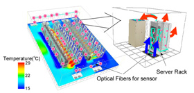 - By combining the following two technologies, the new technology enables accurate temperature measurement (position resolution of less than 1 meter) of large data centers which have multiple heat sources, such as from severs, within the facility: