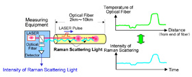 Figure 2: Principle of multiple-point temperature measurement technology using optical fiber and Raman scattering light