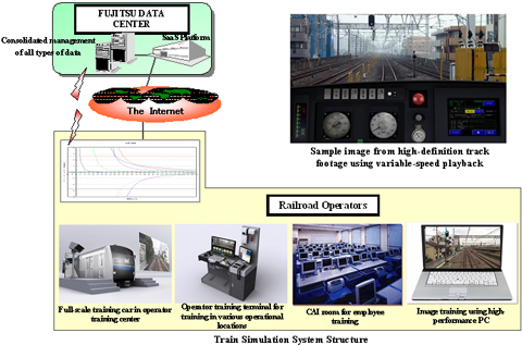(2) Because the system is provided over the Internet, it can offer training at a uniform level of quality to railway operators no matter where they work, something that would be difficult for conventional standalone training systems. Furthermore, it is planned that trainee log and results data will be linked with the "e-learning" service offered by Fujitsu, for integrated management of all train crew training systems.