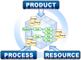 Today, product information is managed by PDM, while the design process is handled in an ad-hoc fashion through paper-based progress charts and various proprietary systems. The design resources encompassing the skills and workloads of designers are mostly intangible, making it extremely difficult to search for reference materials. This results in excessive time and effort. The M3 concept defines the three axes (product information, design process, and design resources) central to design and development and ties them together in a PDM for ongoing and systematic management.