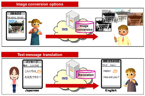 The new specifications will make it easier for telecommunication operators and vendors to develop value-added network functions. Operators that have adopted IMS can add these functions to their existing network and realize new services where, for example, a user edits a picture on the network and shares it, or converts a Japanese text message to English on the network before delivering it to the receiver (see attachment).
