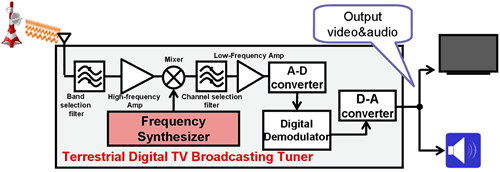 In Japan, the scheduled transition from analog TV broadcasts to digital TV (scheduled for July 2011) has heightened the demand for a frequency-synthesizer specifically designed for use in terrestrial digital broadcasting.