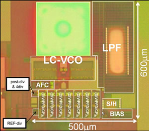 Fujitsu Laboratories has developed a new frequency-synthesizer tailored specifically for reception of terrestrial digital TV broadcasts (Figure 3) — the innovative frequency-synthesizer makes it possible to simultaneously realize noise suppression and scaling of tuners for terrestrial digital TV broadcasts.