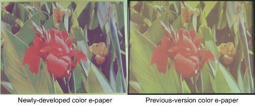 Figure 1: Display image comparison of Fujitsu's new version vs. previous-version color e-paper