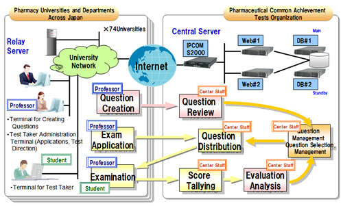 The Pharmaceutical Common Achievement Test, which is composed of a CBT system to test students' basic knowledge and an Objective Structured Clinical Examination (OSCE), a practical exam containing questions on topics such as filling prescriptions and handling patients, is administered at each university. While a common achievement test had already been implemented at medical and dental schools, the Pharmaceutical Common Achievement Tests Organization, together with Fujitsu, pursued the development of an independent CBT system for pharmacy schools.
