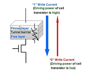 One of these next-generation memory technologies that has attracted a great deal of attention, spin-torque-transfer MRAM, is a memory storage element that makes use of the phenomenon in which passing a current through a magnetic material causes its direction of magnetization to reverse. Passing a current through the material causes the direction of magnetization to either be in a parallel or anti-parallel state. This high or low electrical resistance can be handled in terms of binary digital information, either 1 or 0, enabling the storage element to be used as non-volatile magnetic memory (Figure 1).