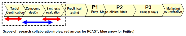 RCAST and Fujitsu, with the latest research results and leading-edge technology, respectively, have set as their goals the development of technology that will become a foundation for the development of drugs targeting as yet untreated disease fields, as well as the generation of small molecule compounds within three years.