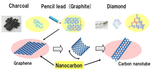 Nanocarbons are one of the better-known examples of a nanomaterial produced through nanotechnology. Nanocarbons include the carbon material graphene, the subject of experiments honored by the 2010 Nobel Prize in Physics, and carbon nanotubes, which were discovered in 1991. These have been recognized for featuring many properties that are ideal for applications in devices, and this has led to high hopes in a wide range of industries for the development of completely novel devices.