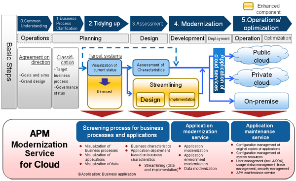 APM Modernization Services for Cloud, an array of services to help customers transition their business systems to the cloud, has been available since May 2010. The new offering, as part of this package, will be delivered as a service for streamlining customers' existing systems that leverages the know-how acquired by Fujitsu in the implementation of its own internal systems.