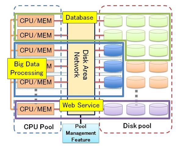 This technology enables the creation of datacenter ICT systems that deliver both high performance and flexibility. For the delivery of existing web services via the cloud, or even for new services yet to emerge, the optimal server and storage units can be consistently configured to fit the unique requirements of the task at hand, swiftly enabling the delivery of ever-higher value-added services. By leveraging the technology's unique flexibility to adapt a system's configuration, capacity planning requirements for the budgeting of essential resources are eliminated when designing a system for a new service for which it is difficult to accurately predict swings in load requirements.