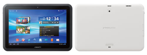 F-01D has been tested to be operable under high-humidity conditions (such as the bathroom) based on the manufacturer's proprietary testing standards. The following, however, should be kept in mind. Users should keep the tablet out of contact and avoid immersion in fluids other than tap water, such as water mixed with soap, shampoo, or bath salts. In case of contact, the device should immediately be washed with room temperature tap water. Users should avoid immersion in bath water and immediately remove the device if it is accidentally dropped into the water. Do not use for long periods of time in damp locations. After usage, the device should be removed from the bathroom. Users should avoid direct contact with shower streams. The device should not be used in a sauna. When moving from a chilly outdoor environment to a warm location, such as the bathroom, users should allow the unit to briefly warm up first. Do not charge the device while in the bathroom. IPX5 designation indicates that the tablet can function normally after being sprayed from all directions with water from a nozzle with a diameter of 6.3 mm at a rate of 12.5 liters per minute from a distance of approximately 3m for a period of at least 3 minutes. The IPX7 rating indicates that water will not penetrate inside the tablet and it will function normally after being gently immersed in a tank of room-temperature tap or still water of a depth of 1 m for approximately 30 minutes.