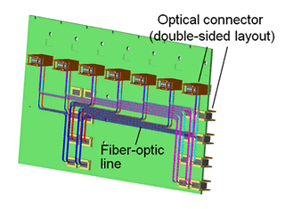 Ongoing improvements to CPU performance have led to an astonishing increase in the data-processing capacity of servers. Furthermore, virtualization technology that consolidates multiple processes in a single CPU is advancing and the volume of data exchanged between CPUs and required memory capacity is rapidly increasing. Accordingly, several terabits per second of input/output signal-bandwidth capacity will become necessary. This creates a need for interconnects between multiple signal sources that can handle transmission speeds of tens of terabits per second in total.