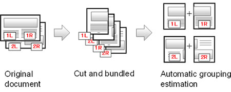 From the intermixed scanned images of the left and right halves of an A3 document, the technology will automatically estimate how images are grouped to recreate the original A3-page layout (Figure 2).
