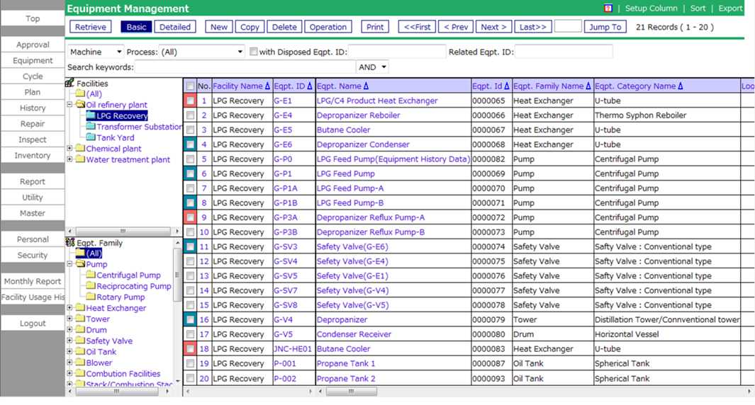 PLANTIA is a solution that enables comprehensive management of maintenance work for a variety of production site equipment, such as manufacturing equipment and utility equipment. It is comprised of seven sub-systems: Equipment Ledger Management, Maintenance Cycle Management, Maintenance Plan Management, Maintenance Log Management, Repair Incident Management, Inventory Management, and Routine Inspection Management. With applications that fully leverage front-line know-how, it provides strong support for the execution of maintenance tasks. In addition, it provides support in Japanese and English for customers that are expanding globally.
