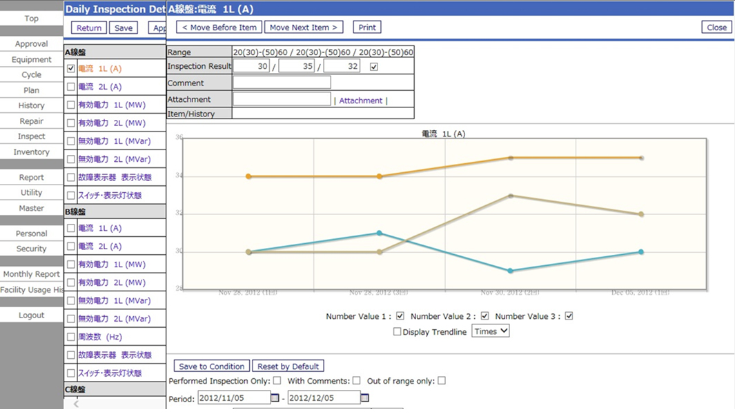 PLANTIA utilizes massive amounts of maintenance log data accumulated in a database to enable refinements to maintenance cycles and support improvements to operations. Based on past repairs and the maintenance cycle, it can generate a maintenance calendar (tally sheet), formulate implementation plans, and manage costs, providing total support for maintenance work over the medium and long terms.