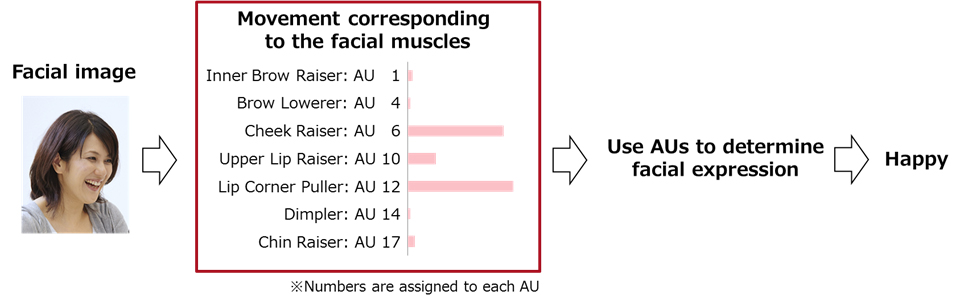 In recent years, technologies that detect changes in facial expression from images and read human emotions have been increasingly attracting interest. Existing technologies have mainly been developed for detecting clear changes in facial expression (e.g. the corners of the mouth and the corners of the eyes moving widely). These technologies have been used in some practical applications, including automatic extraction of highlight scenes in videos and enhancing robots' reactions. In the future, facial expression recognition technologies will be more widely utilized in a variety of situations, including patient monitoring in healthcare and analysis of customers' responses to products in marketing campaigns.