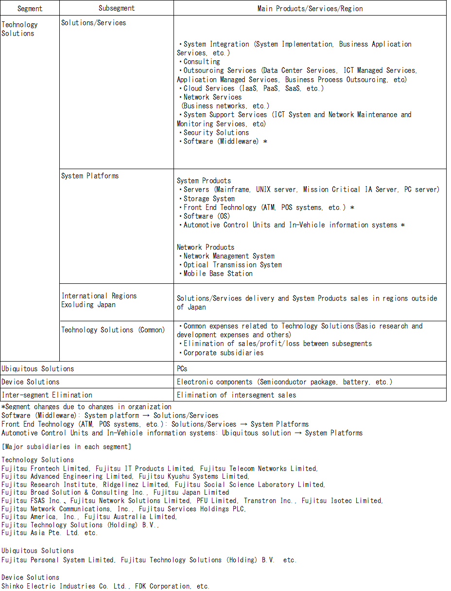 Fujitsu has decided to make some segment changes in order to more clearly demonstrate its progress toward the achievement of its medium-term goals and to more closely reflect the perspective of the management approach that corresponds to the organizational structure with the segment for disclosure.
