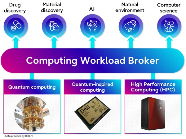 Fujitsu is currently working to develop a computing workload broker—a software technology that uses AI to automatically select the appropriate resources from advanced computing technologies and solutions, including large-scale cloud-based HPC, quantum computing, Digital Annealer, as well as quantum simulators to solve customers’ complex problems.