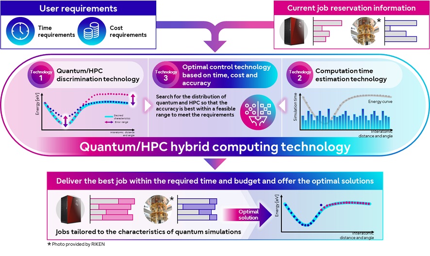 In order to enable customers to perform calculations at optimal costs and in optimal time, Fujitsu developed a technology that optimizes the performance of quantum chemical calculations. The technology takes into account both the calculation time and cost estimated by the quantum/HPC algorithm discrimination technology and the computation time estimation technology as well as the usage of calculation resources. In this way, the technology enables users to solve quantum chemical calculation problems in a way that best meets their needs without the need to choose from different computational resources themselves.
