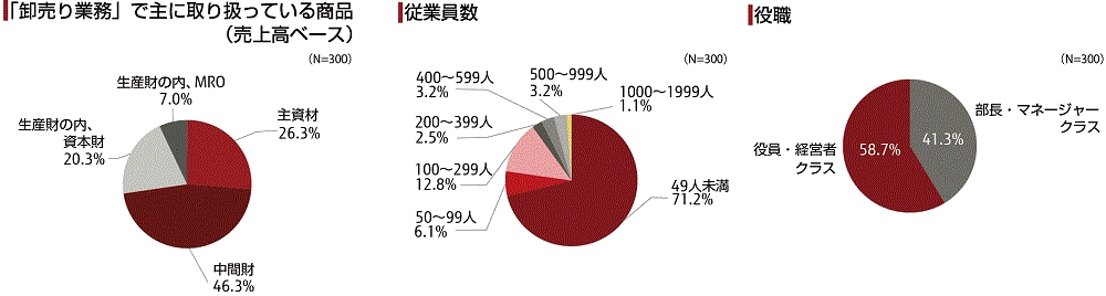 - 調査対象:「産業財」を取り扱っている卸売業や商社の経営者・役員や部長などマネージャークラス