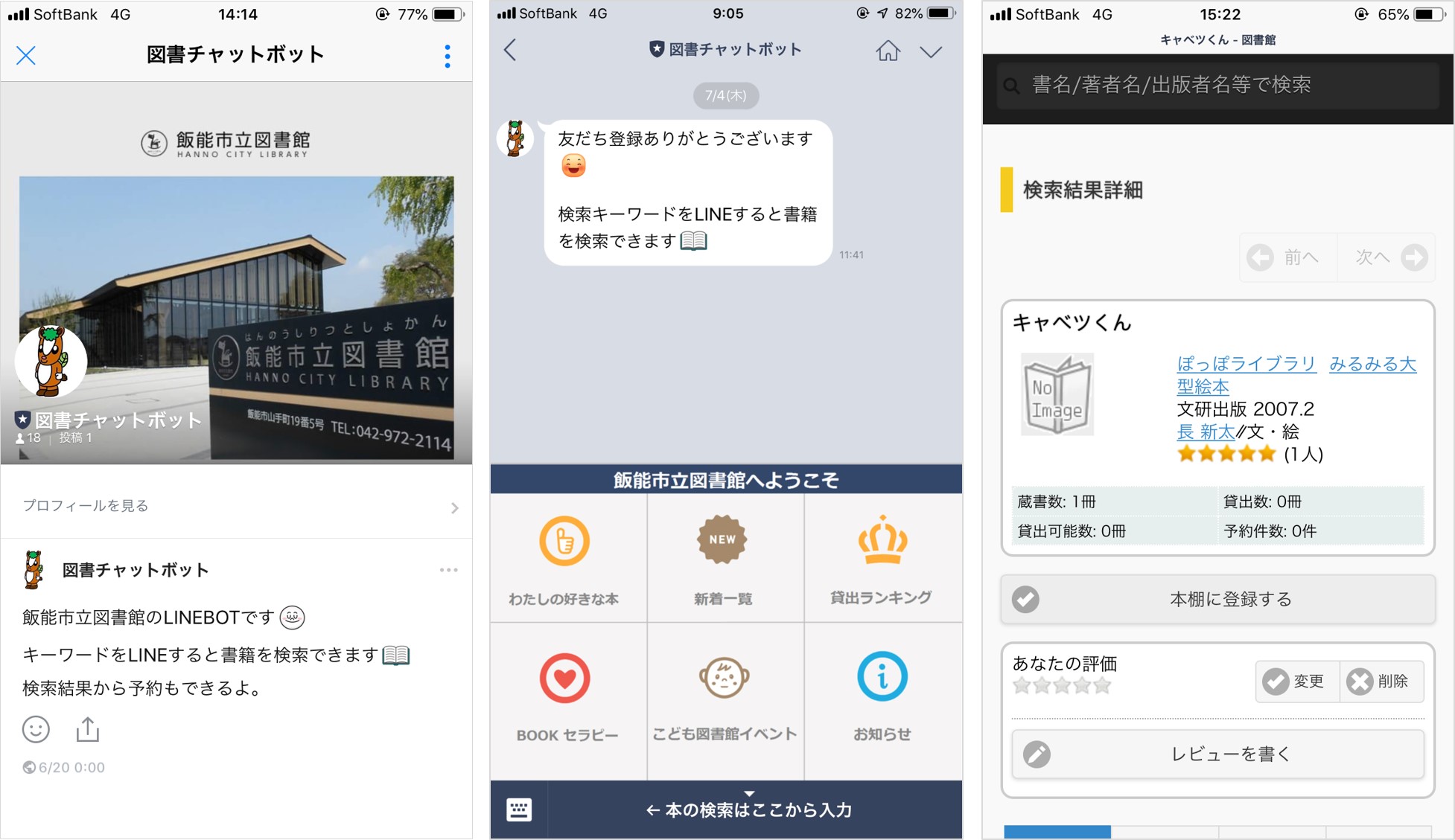 LINE上で図書の検索、予約が可能に