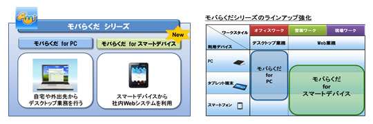 | ※1:モバらくだ for PC | これまでの「モバイルオフィスゲートウェイ」関連商品の総称を改称。 |