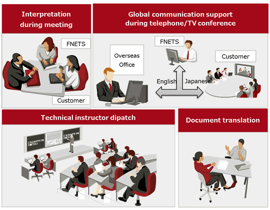 - Services such as interpretation, e-mail/document/web site translation, and technical instructor dispatch are provided.