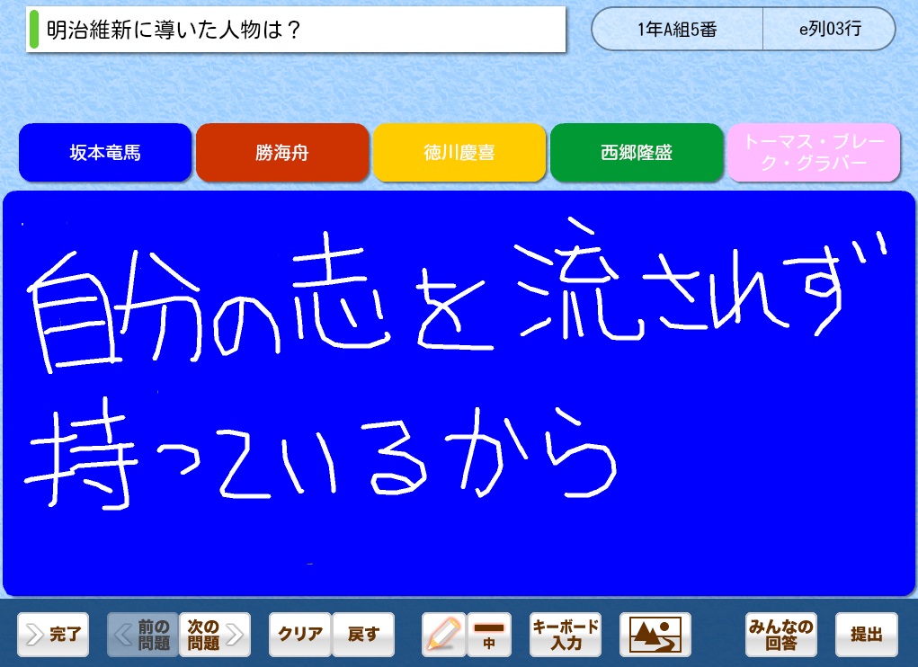 生徒のタブレット画面例