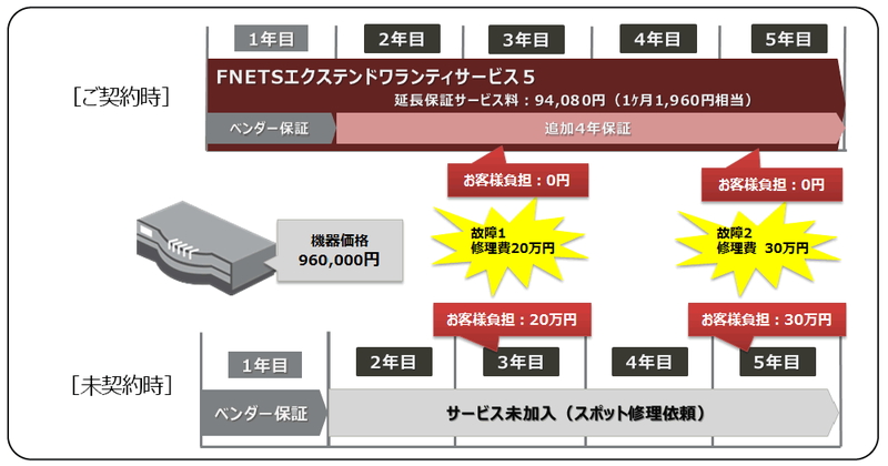 (ベンダー保証1年を含め3年間):機器購入価格(税別)×4.9% - FNETSエクステンドワランティサービス5