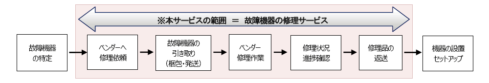 | 代替機器貸出 | 修理期間中に使用する代替機器を貸し出しし、サービス停止時間を最小化します。 |