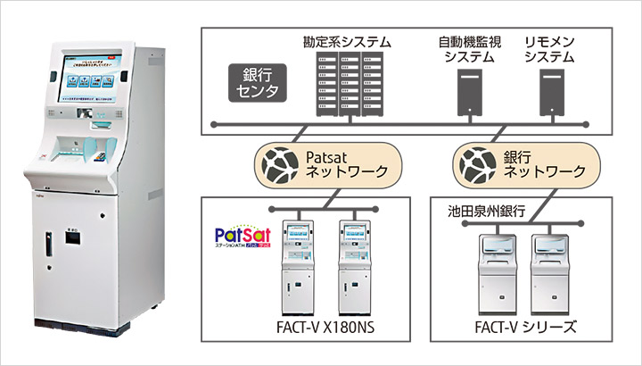 ステーションATM Patsatは、池田泉州銀行様稼働中のATMシステム(勘定系システム・ATMアプリケーション・運用システム等)を活用することで、運用・開発コストの削減と「銀行ATM」としての信頼性の確保を実現いたしました。