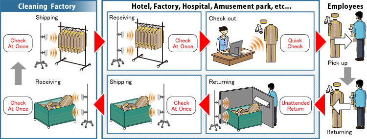 The Fujitsu RFID tag can withstand high pressure extractors and flatworks irons used in high-throughput laundries factories.