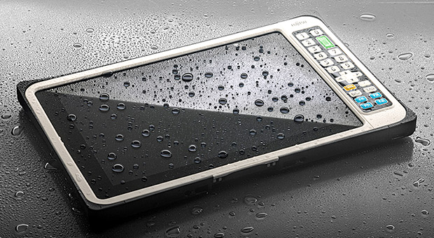 四隅に衝撃吸収バンパーを配置(Patio720E)、表示部に衝撃に強い強化ガラスを採用し、業務に不可欠な耐環境性を実現しています。