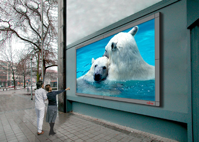 当社は本年2月、大型表示装置「Super Frontech Vision HD/SD/BNシリーズ」を販売開始しました。また、6月には「Super Frontech Vision EPシリーズ」として、カラー電子ペーパーを採用し、世界最高水準の低消費電力を実現した屋内向けマルチパネル型表示装置を追加しました。