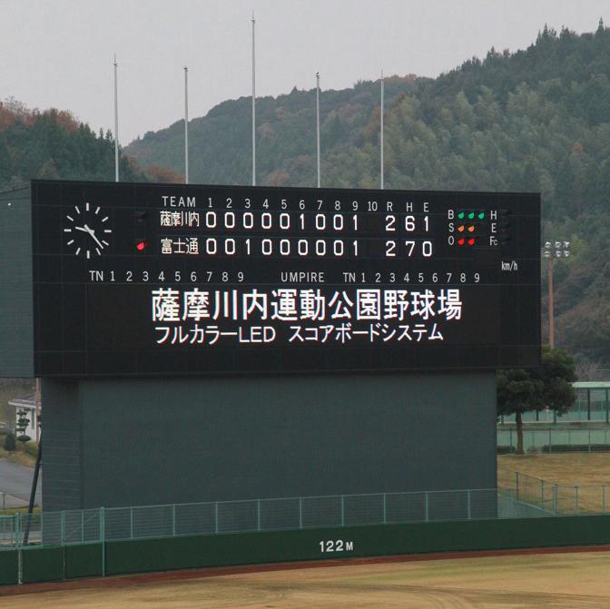 このほど鹿児島県薩摩川内市様 総合運動公園野球場に、富士通フロンテック株式会社(本社:東京都稲城市矢野口1776番地、代表取締役社長: 利根廣貞、以下:富士通フロンテック)は、多彩な映像表現にも対応し、効果的な運用をサポートする「フルカラーLEDスコアボード」を納入しました。