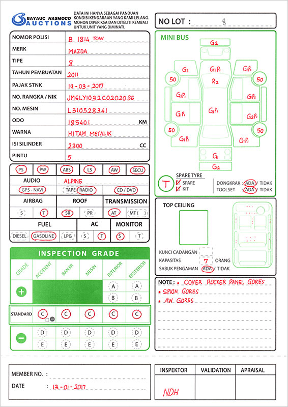 オークションを行うために必要な、せり前情報(出品車両情報、手数料など開催情報の管理)、せり開催(せり進行およびせり結果情報の管理)、せり後情報(経理情報、車両搬出入、再出品の管理)と、来場者情報管理やオークション会場の従業員情報管理、オークション開催情報管理など全ての管理業務を行います。特に、BNII様が今回新たに採用したエンジン状態や修復状態などをポイント化して評価する車両検査方式に対応し、インドネシアにおける公平・公正なオークション開催に寄与しています。