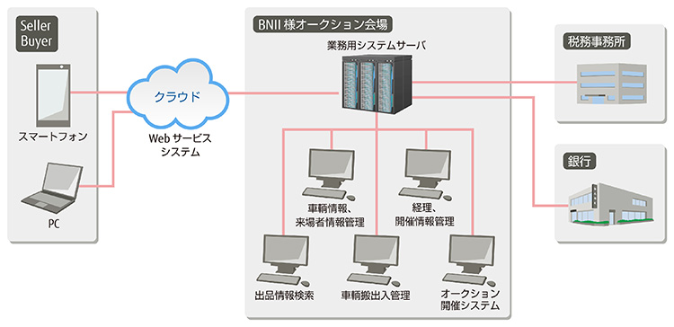 当社は、このたびインドネシア共和国ジャカルタにおいて、中古車オークション事業を開始するPT.Bayauc Nasmoco Investindo(ベイオーク ナスモコ インベストインド、以下、BNII)様向けに、オークション全般を管理する業務用システムと、広く一般向けに出品車両情報などを公開するWEBサービスシステムを提供しました。